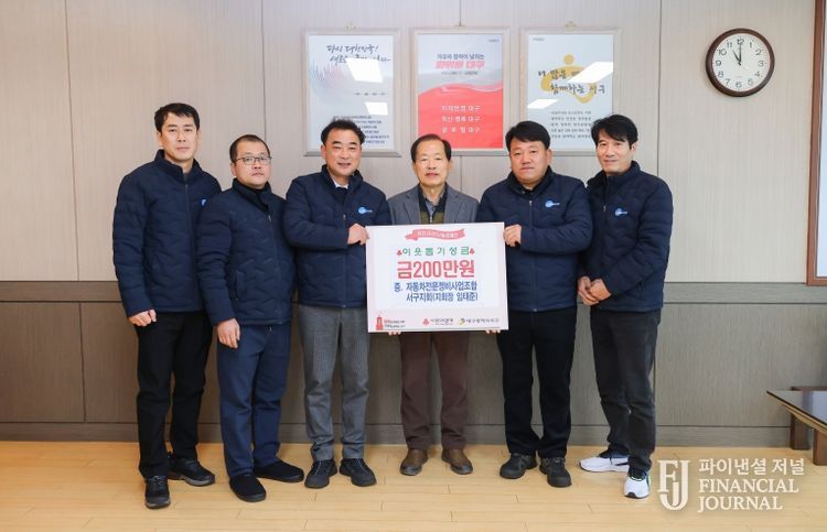 파이낸셜 저널 금교광 기자 | 대구광역시 자동차전문정비사업조합 서구지회(지회장 임태준)는 지난 12일 서구청을 방문해 어려운 이웃을 위한 성금 200만 원을 기탁했다.