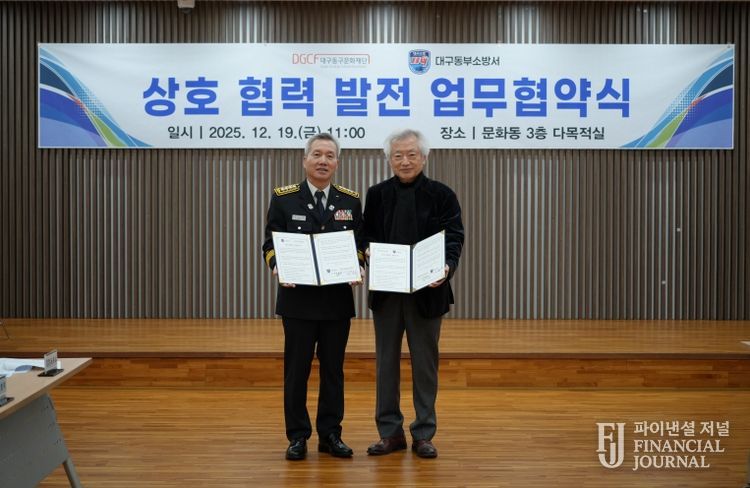 파이낸셜 저널 금교광 기자 | (재)대구광역시동구문화재단(이사장 윤석준)과 대구동부소방서가 지난 12월 19일, 지역 문화시설의 안전관리 강화와 재난 대응 협력 구축을 위한 업무협약(MOU)을 체결했다.