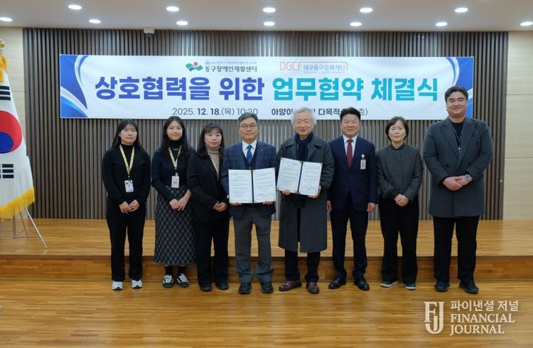 파이낸셜 저널 금교광 기자 | (재)대구동구문화재단(이사장 윤석준)과 동구장애인재활센터(센터장 이종근)는 지난 12월 18일, 지역 장애인의 건강증진과 생활체육 활성화를 위한 업무협약(MOU)을 체결했다.