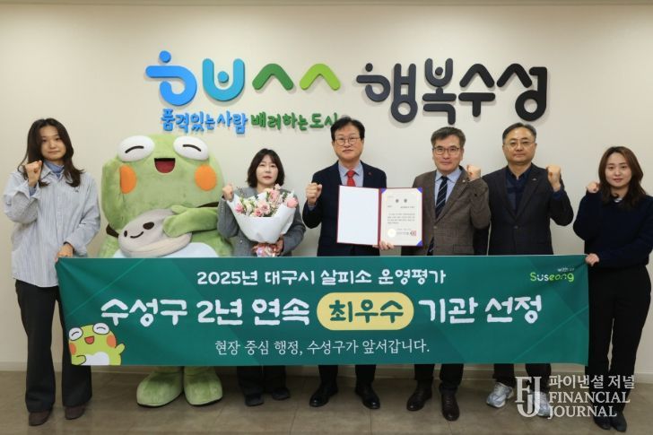 파이낸셜 저널 금교광 기자 | 대구 수성구는 ‘대구시 살피소 운영 실적 평가’에서 2년 연속 최우수 기관으로 선정됐다고 밝혔다.