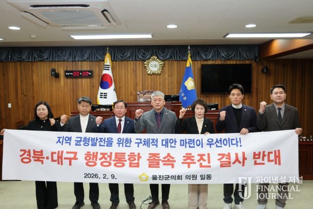 파이낸셜 저널 신영숙 기자 | 울진군의회는 2월 9일 본회의장에서 경북·대구 행정통합 졸속 추진에 대한 강력한 반대 입장을 담은 성명서를 발표했다.