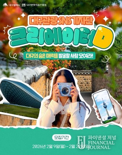 파이낸셜 저널 금교광 기자 | 대구광역시와 대구문화예술진흥원은 대구 관광의 매력을 발굴하고, 확산할 대구관광 크리에이터D를 다가오는 22일까지 모집한다.