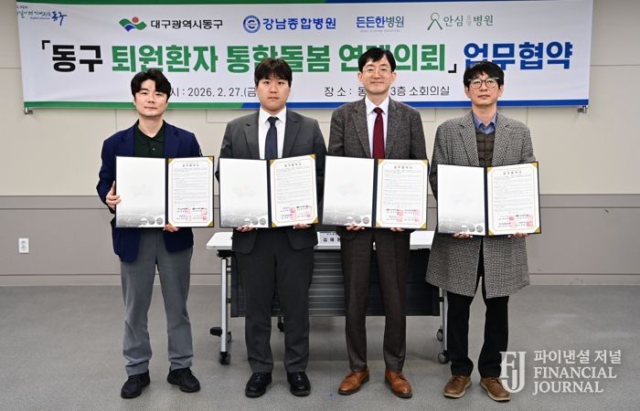 파이낸셜 저널 금교광 기자 | 대구 동구청은 지난 2월 27일, 강남종합병원, 든든한병원, 안심요양병원 등 관내 3개 의료기관과 함께 ‘퇴원 환자 통합돌봄 연계 의뢰’를 위한 업무협약을 체결했다.
