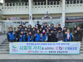 이비티에스(EBTS) 협동조합이 새해 초부터 따뜻한 나눔의 손길을 전하며 지역사회의 귀감이 되고 있다. 이비티에스 협동조합 포항남부지국은 지난 5일, 경주 독도사랑휴게소를 방문해 주변 환경 정비 및 시설 청소 봉사활동을 펼쳤다. 이번 활동은 단순히 시설을 깨끗이 하는 의미를 넘어, 조합이 추구하는 ‘사회적 책임’과 ‘지역사회 상생’이라는 핵심 가치를 현장에서 실천하기 위해 마련됐다. 이날 봉사활동에는 정선분 예비센터장과 성이용 지점장을 비롯해 정미분, 이순분, 정수남, 권순임, 김순연, 최도근, 임덕출, 오유림, 차연서, 이윤자, 류동왕, 홍종석, 김정호, 김기자, 김대래, 김복수, 정말향, 조천희, 이귀애, 김문숙 등 26명의 조합원이 참여해 힘을 보탰다. 참가자들은 안유섭 총괄본부장의 지휘 아래 시니어문화센터 내부부터 휴게소 화장실, 주변 부지 등 시설 전반을 구석구석 살폈다. 쌀쌀한 겨울 날씨에도 불구하고 조합원들은 빗자루와 걸레를 들고 솔선수범하며 “조합원의 책임과 의무를 다하는 것이 곧 우리 조직의 힘”이라는 EBTS 특유의 조직 문화를 몸소 보여주었다. 정선분 예비센터장은 “독도사랑휴게소는 시니어 세대가 활기차게 머물고, 지역 주민들이 함께 참여하