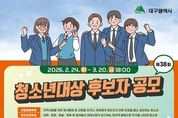 파이낸셜 저널 금교광 기자 | 대구광역시는 건강하고 바른 성장으로 지역사회의 귀감이 된 청소년을 발굴·포상하기 위해 ‘2026년 제38회 대구광역시 청소년대상’ 후보자를 2월 24일부터 3월 20일까지 공개 모집한다. 1989년 첫발을 내디딘 ‘청소년대상’은 건강하고 올바른 청소년 상(像) 정립을 위해 매년 각 분야의 모범 청소년을 시상해 왔다. 지난해까지 총 250명(대상 36명, 우수상 111명, 장려상 103명)의 수상자를 배출하며 지역을 대표하는 청소년 포상으로 자리 잡았다. 후보자 자격은 공고일(2.23.) 현재 대구시에 1년 이상 계속 거주하고 있는 만 9세 이상 24세 이하 청소년으로, 구청장·군수, 학교장, 청소년 관계기관장 등의 추천을 통해 접수할 수 있다. 시상 부문은 △선행효행 △창의인재 △푸른성장 3개 분야며, 선정 인원은 대상 1명을 포함해 각 부문별 우수상 1명, 장려상 1명씩 총 7명이다. 대상은 수상 후보자 중 여러 면에서 성품과 행동이 가장 훌륭해 모든 청소년의 귀감이 되는 청소년에게 수여된다. 선행효행 부문은 지역사회를 위한 봉사활동 중 선행을 하거나,