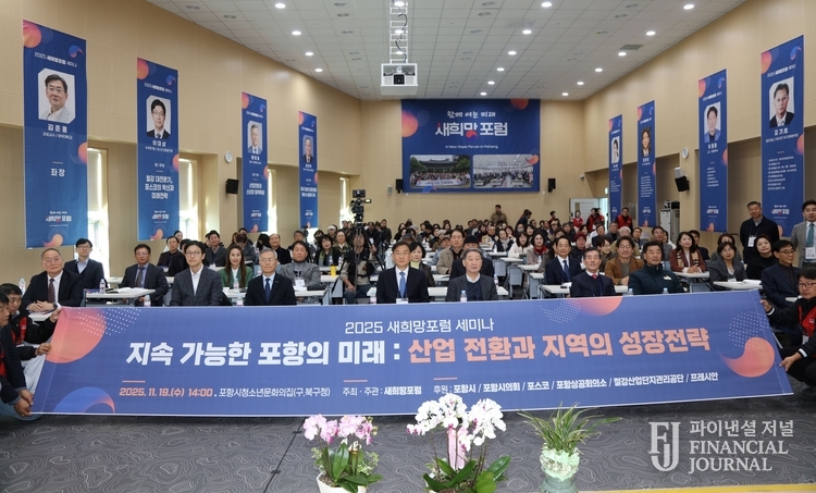 포항 발전을 모색하기 위해 출범한 ‘새희망포럼’은 19일 오후 2시 포항시청소년문화의집에서 200여 회원과 시민이 참석한 가운데 '지속 가능한 포항의 미래 : 산업 전환과 지역의 성장전략'을 주제로 ‘2025 새희망포럼 세미나’를 개최했다.