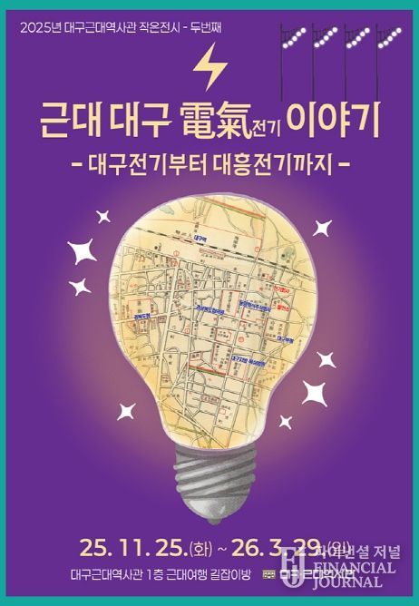 파이낸셜 저널 금교광 기자 | ( 재)대구문화예술진흥원 박물관운영본부 소속 대구근대역사관은 전기(電氣)로 근대 대구사회의 일면을 살펴보는 ‘근대 대구 電氣전기 이야기 –대구전기부터 대흥전기까지-’ 작은전시를 11월 25일부터 2026년 3월 29일까지 1층 대구 근대여행 길잡이방에서 개최한다.
