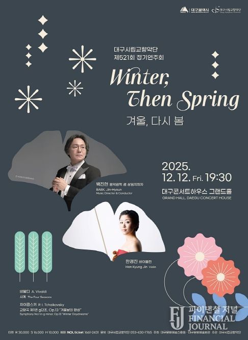 파이낸셜 저널 금교광 기자 | 대구시립교향악단은 12월 12일 오후 7시 30분, 대구콘서트하우스 그랜드홀에서 올해 마지막 정기 공연인 ‘제521회 정기연주회: 겨울, 다시 봄’을 개최한다.