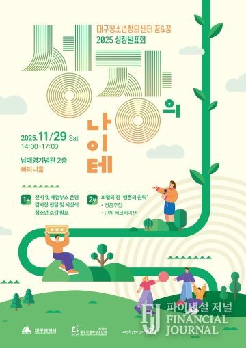 파이낸셜 저널 금교광 기자 | 대구광역시는 대구청소년창의센터 꿈&꿈(센터장 김태완)이 11월 29일 오후 2시, 남대영기념관에서 청소년들의 한 해 동안의 성장과 활동 성과를 공유하는 ‘2025년 성장발표회-성장의 나이테’를 개최한다고 밝혔다.
