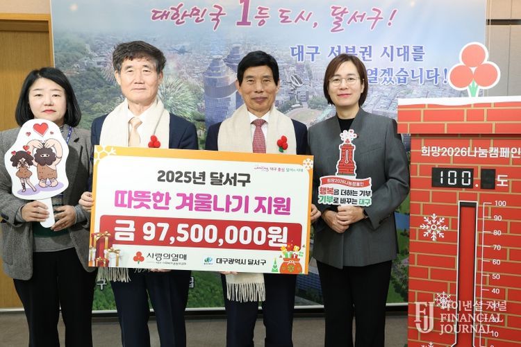 이날 행사에서는 따뜻한 겨울나기 지원사업을 위해 총 9,750만 원의 성금이 달서구에 전달됐으며, 해당 성금은 저소득 취약계층 975세대에 각 10만 원씩 지원될 예정이다.