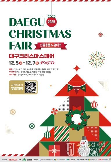 파이낸셜 저널 금교광 기자 | 대구 북구청은 오는 2025년 12월 5일부터 7일까지 3일간 엑스코 서관 제1전시장에서 열리는 ‘2025 대구 크리스마스페어’에 참여해 관광홍보부스를 운영하여 북구가 가진 다양한 관광매력을 방문객들에게 선보일 계획이다.