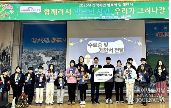 파이낸셜 저널 금교광 기자 | 대구 달서구는 13일 구청에서 '아동정책제안 전달식'을 개최하고, 아동참여기구의 2025년 활동을 마무리했다.