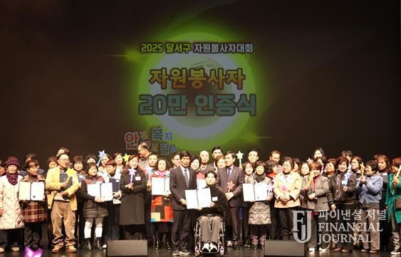 파이낸셜 저널 금교광 기자 | 대구 달서구는 달서구자원봉사센터와 함께 16일 달서아트센터 청룡홀에서 자원봉사자와 초청 인사 등 500여 명이 참석한 가운데 ‘2025 달서구 자원봉사자대회’를 개최했다.