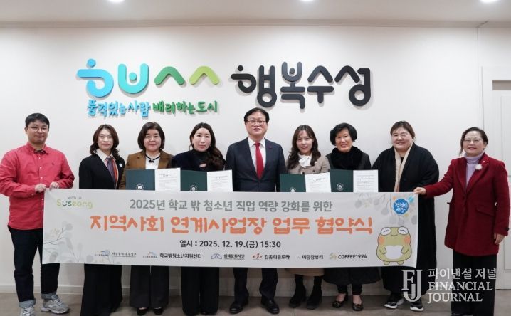 파이낸셜 저널 금교광 기자 | 대구 수성구는 지난 19일 학교밖청소년의 직업 역량 강화를 위한 지역사회 연계사업 추진을 위해 관련 기관과 업무협약을 체결했다.