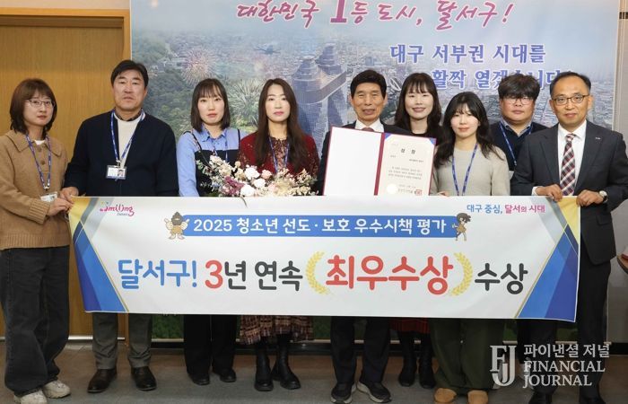 파이낸셜 저널 금교광 기자 | 대구 달서구는 '2025년도 대구시 청소년 선도·보호 우수시책 구·군 평가'에서 3년 연속 최우수 기관으로 선정됐다.