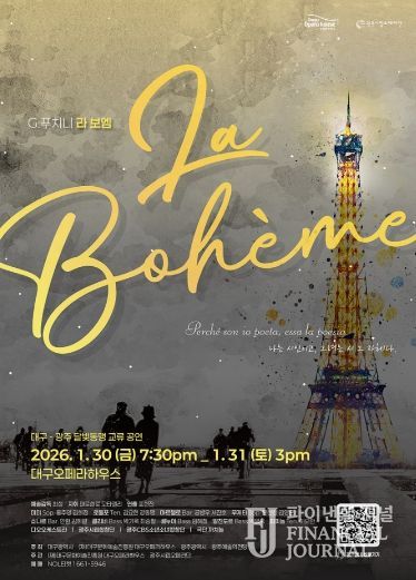 파이낸셜 저널 금교광 기자 | 대구문화예술진흥원 대구오페라하우스는 2026 첫 공연으로 광주시립오페라단 제작의 푸치니 오페라 '라 보엠'을 1월 30일 오후 7시 30분, 31일 오후 3시에 대구오페라하우스에서 선보인다.