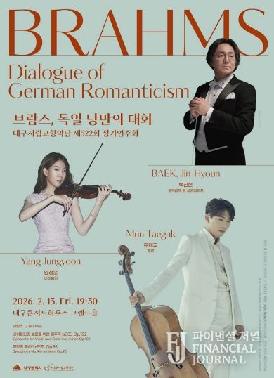 파이낸셜 저널 금교광 기자 | 두 악기가 주고받는 정교한 선율에서 오케스트라가 만드는 밀도 높은 호흡까지, 대구시립교향악단은 오는 2월 13일 오후 7시 30분, 대구콘서트하우스 그랜드홀에서 '제522회 정기연주회 : 브람스, 독일 낭만의 대화'를 선보인다.