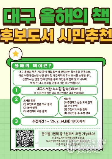 파이낸셜 저널 금교광 기자 | 대구광역시는 책 읽는 도시 조성을 위해 매년 ‘대구 올해의 책’ 10권을 선정·홍보하고 있다.