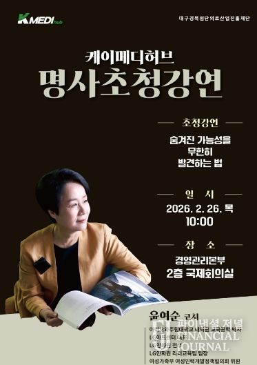 파이낸셜 저널 금교광 기자 | K-MEDI hub가 오는 2월 26일 10시 국제회의실에서 윤여순 코칭전문가를 초빙해 ‘제6회 명사초청강연’을 개최한다.