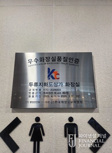 파이낸셜 저널 금교광 기자 | 대구공공시설관리공단은 지난 1일 두류지하도상가 화장실이 행정안전부 주관 한국화장실문화협회로부터 ‘우수화장실 품질인증’을 획득했다고 밝혔다.