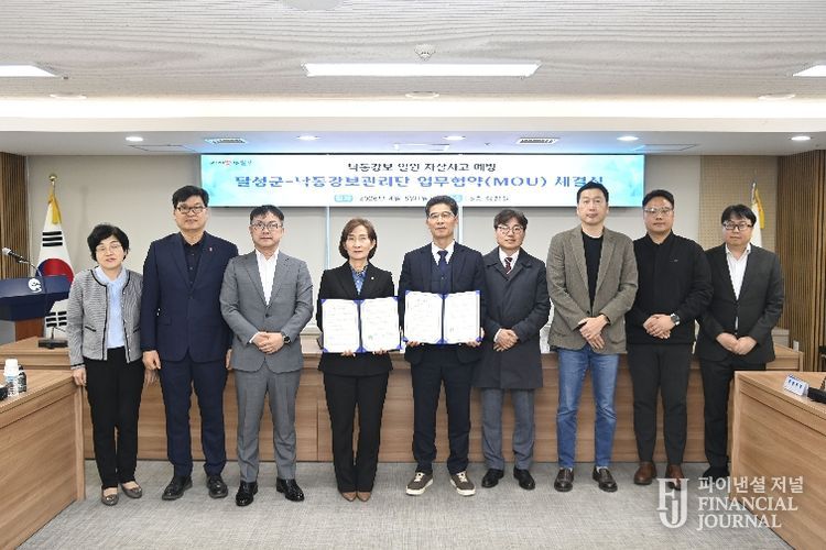 파이낸셜 저널 금교광 기자 | 달성군은 6일 군청 상황실에서 한국수자원공사 낙동강보관리단과 ‘낙동강보 일원 자살 사고 예방을 위한 상호협력 업무협약’을 체결했다고 밝혔다.