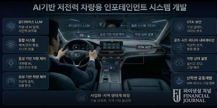 이번 사업은 이러한 산업변화에 대응하고자 ▲온디바이스(On-device) AI 기반 음성·제스처 인식 ▲저전력 최적화 및 실시간 처리 ▲무선 업데이트(OTA) 및 차량 보안 ▲경량 대규모언어모델(LLM) 기반 차량 제어 및 사용자 인터페이스 등을 통합한 차세대 차량 인포테인먼트 플랫폼 개발을 추진한다.