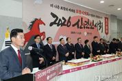 파이낸셜 저널 신영숙 기자 | 포항시의회는 병오년 새해를 맞아 2일 오전 시의회 1층 로비에서 신년인사회를 개최했다. 이날 신년인사회에는 김일만 의장을 비롯한 시의원, 이강덕 시장과 서재원 정무특보 등 시청 간부 공무원, 김정재‧이상휘 국회의원, 경북도의회 이동업·연규식·서석영·손희권·이칠구 도의원, 공원식 포항지역발전협의회장, 진병수·박태식·이상구·문명호 전 시의회 의장, 한명희 의정회장, 이두우·강한국·김경춘·이순동 전 의원을 비롯한 전직 시의원 등 총 100명이 참석했다. 의원들과 내빈들은 새해 덕담을 나누고 의정 철학을 담은 ‘마부정제(馬不停蹄 : 달리는 말은 말굽을 멈추지 않는다)’가 새겨진 시루떡을 자르며, 2026년 포항시의회 의정 운영 방향과 비전을 공유했다. 김일만 의장은 신년사 통해 “지난 한 해 우리는 쉽지 않은 여건 속에서도 K-스틸법 제정과 글로벌 AI 데이터센터 유치 등을 통해 도시의 산업 체질을 바꾸기 위한 기반을 다지며, 포항-영덕 고속도로 개통, 국제학교 유치 등 시민의 삶의 질 향상을 위해서도 지속적인 노력을 기울여 왔다”며, “병오년 새해에도 우리 앞에 직면한 과제를 하나하나